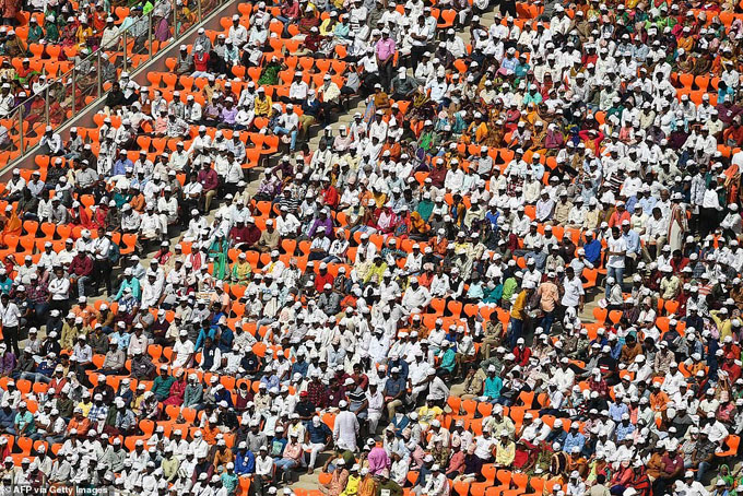 Người dân Ấn Độ tại sân vận động. Ảnh: EPA.