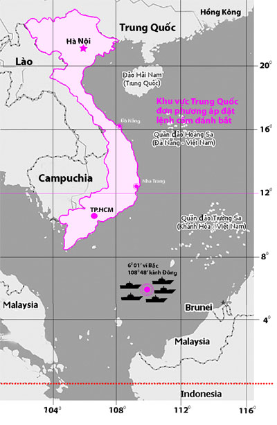 Theo Tân Văn xã, lệnh cấm đơn phương nói trên được áp đặt cho khu vực từ vĩ tuyến 12 kéo lên đến ranh giới biển giữa tỉnh Quảng Đông và Phúc Kiến của Trung Quốc. Trong khi đó, đội tàu cá Trung Quốc đi thẳng xuống “sát mí” bản đồ đường lưỡi bò và đánh bắt trong vùng biển tây nam Trường Sa với tọa độ hiện nay là 6,01 độ vĩ bắc, 108,48 độ kinh đông. Như vậy, rõ ràng là “Trung Quốc ngang nhiên thách thức các nước liên quan đuổi tàu cá của họ ở phía nam đồng thời lại ngăn cấm các nước đó vào đánh bắt ở phía bắc”, tiến sĩ James Holmes (Trường Chiến tranh hải quân Mỹ) nói với Thanh Niên. Ông Holmes cảnh báo: “Đối với Trung Quốc, khi đụng đến lợi ích cốt lõi, sẽ chỉ có một viễn cảnh duy nhất: Chúng tôi được, các người mất. Luật ở “ao nhà” sẽ dần dà trở thành luật chung nếu các bên liên quan không có cơ chế phản đối hữu hiệu”.