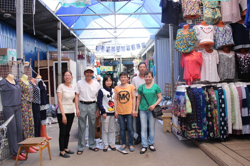 Bà con ở chợ ngoài chụp ảnh lưu niệm.