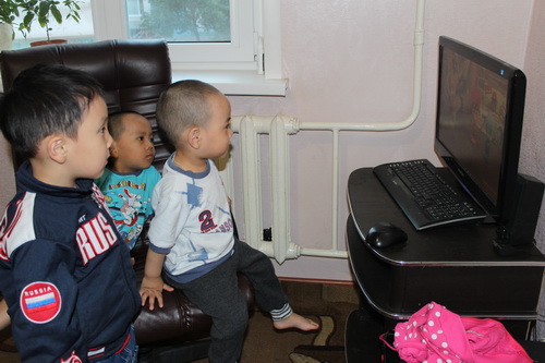 Bé xem hoạt hình.