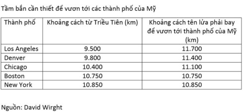 Kênh CNBC của Mỹ dẫn lời một số chuyên gia quân sự quốc phòng nước này cho biết, quả tên lửa đạn đạo liên lục địa mà Triều Tiên phóng đêm 28/7 có thể vươn tới thành phố New York và những thành phố khác ở bờ Đông nước Mỹ.