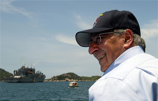Bộ trưởng Quốc phòng Mỹ Leon Panetta và tàu hậu cần USS Richard E. Byrd thăm cảng Cam Ranh của Việt Nam hồi tháng 7/2012.