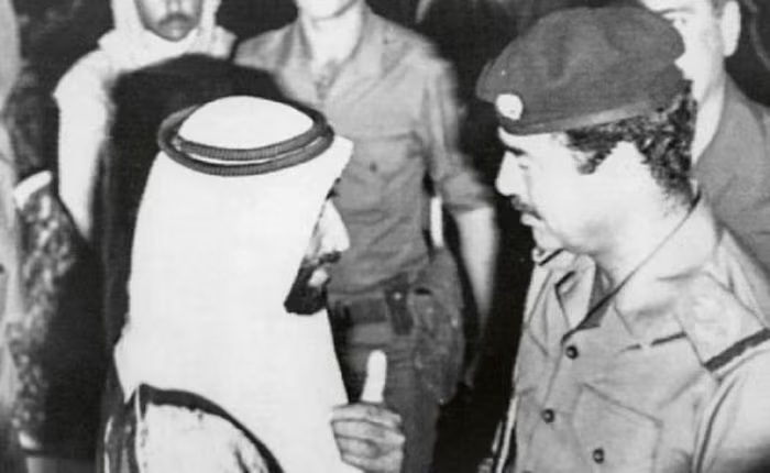 Tổng thống Iraq Saddam Hussein và nhà lãnh đạo UAE Mohamed Bin Zayed. (Ảnh: Military Watch).