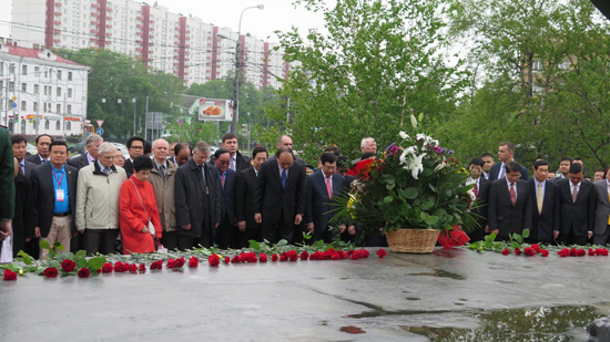 Thủ tướng và đoàn đại biểu VN cùng đông đảo bạn bè Nga kính cẩn nghiêng mình trước Tượng đài HCM ở thủ đô Moskva