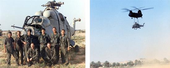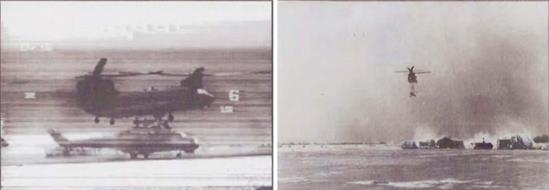 Trái: Ảnh hồng ngoại chụp lúc chiếc Chalk 2 cẩu chiếc Mi-25 lên. Phải: Chalk 2 hạ cánh ở Ndjamena ngay trước khi cơn bão cát tiến đến - Ảnh: Quân đội Mỹ