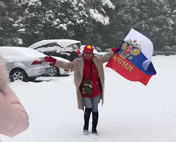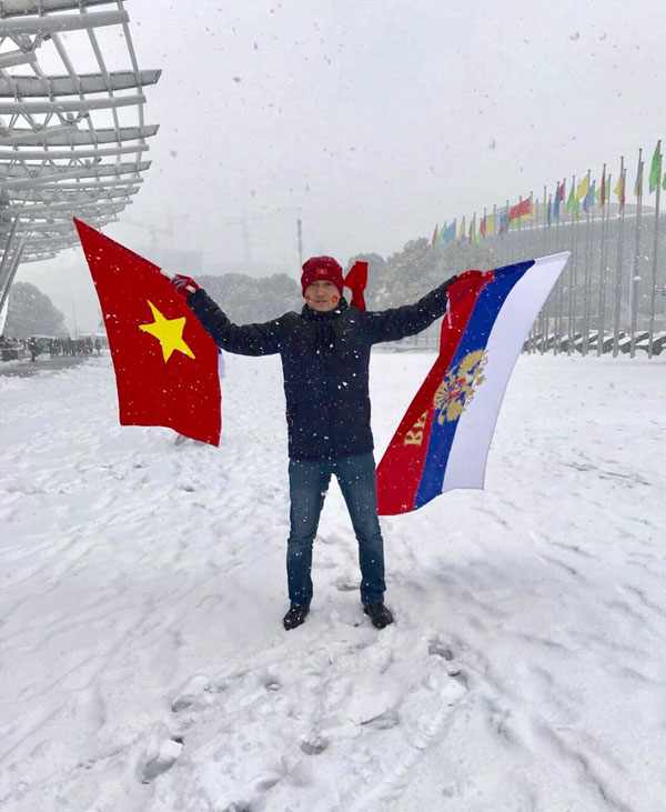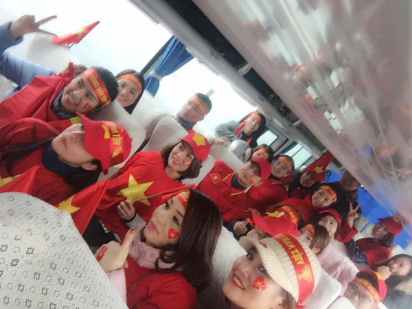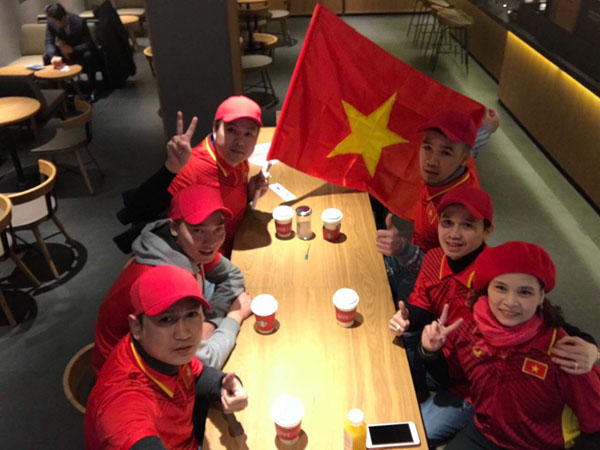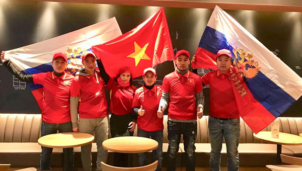 Tinh thần yêu bóng đá được mang từ nước Nga xa xôi đến khán đài sân vận động Thường Châu - Trung Quốc cổ vũ đội tuyển U23 Việt Nam