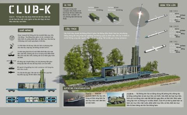 Tổ hợp tên lửa Club-K lần đầu tiên được giới thiệu trước công chúng tại triển lãm hải quân quốc tế vào năm 2011. Theo phân loại, Club-K thuộc loại tổ hợp tên lửa phòng thủ bờ biển. Tuy nhiên, trong thực tế tổ hợp này rất đa năng, có thể tấn công bất kỳ mục tiêu mặt đất và mặt nước ở khoảng cách lên tới 300 km. Lưu ý rằng, ở giai đoạn cuối của quỹ đạo, tốc độ của tên lửa phóng từ Club-K nhanh gấp 3 lần tốc độ âm thanh.