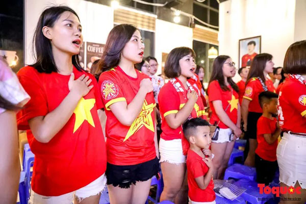 Hát vang quốc ca , cùng nhịp đập với những tuyển thủ của chúng ta.