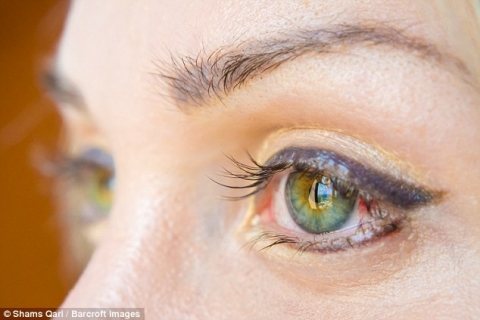 Màu mắt phải cô chuyển sang màu xanh dương thay vì màu nâu bẩm sinh.