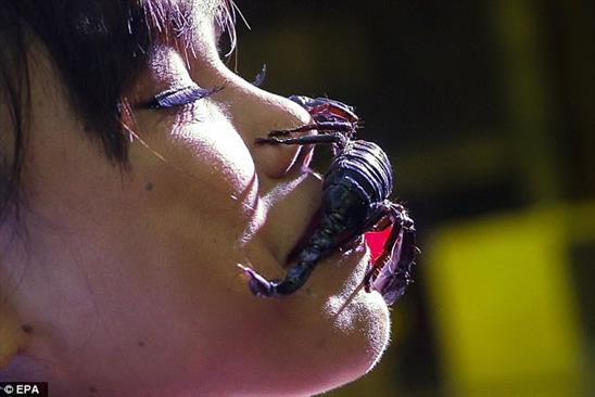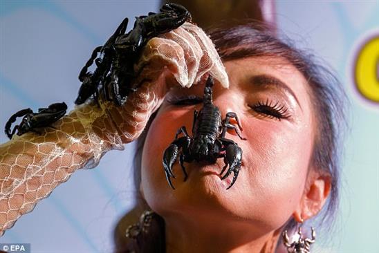 Cô gái Thái Lan để chục con bọ cạp cực độc bò trên mặt
