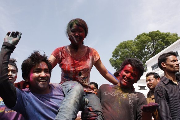 Huyền ở lễ hội Holy tại Nepal. Cô đã có thời gian sống ở đây ba tháng.