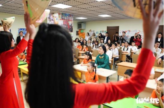 Tại lớp học tiếng Việt nằm ngay bên trong INCENTRA, Phu nhân chia sẻ sự vui mừng khi nhìn thấy những gương mặt "rất Việt Nam" trên đất Nga. Bà cũng bày tỏ xúc động khi chứng kiến sự hướng về quê hương, đất nước của bà con Việt qua các thế hệ.