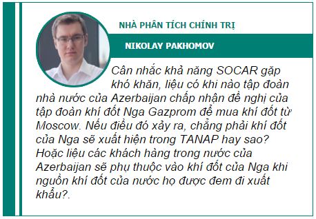 Ông Pakhomov nghi ngờ liệu Azerbaijan có thể giữ lời hứa với Thổ Nhĩ Kỳ và châu Âu hay không khi tập đoàn khí đốt nước này Shah Deniz - dự kiến sẽ là nguồn cung chính cho TANAP, phải chịu áp lực cung đủ khí đốt cho Gruzia nếu không muốn Gruzia hợp tác với Nga.