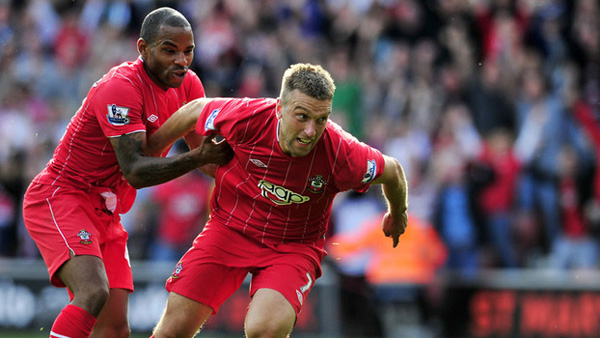 Lambert ăn mừng bàn thắng ghi được cho Southampton (Ảnh: Getty Images).