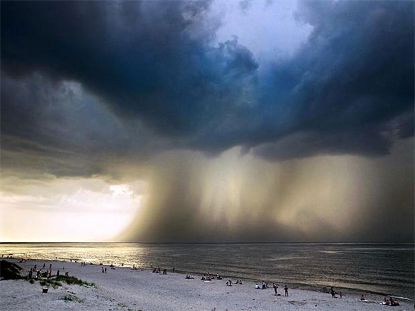 Từ một màu xanh trong, bầu trời bỗng kéo những đám mây đen kịt và gây mưa lớn thành từng mảng tại bãi biển Baltiysk, Nga gần biên giới Ba Lan.