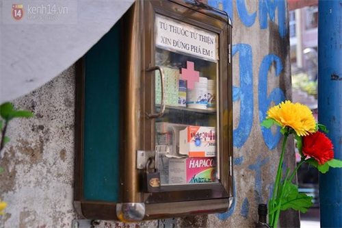 Chiếc tủ thuốc này đã xuất hiện ở đây hơn 10 năm nay, do người dân trong hẻm chung tay, góp sức dựng nên. Người có tiền thì góp dăm ba chục nghìn, người không có tiền thì góp vỉ thuốc, chai dầu gió, cuộn băng keo y tế... Tuy đơn sơ, giản dị nhưng nhờ chiếc tủ thuốc này mà có biết bao người đi đường được giúp đỡ kịp thời.