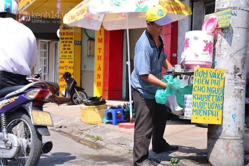 Hàng ngày, rất nhiều người qua đường đã ghé lại đây để uống nước. Em Long (16 tuổi) chia sẻ: “Nhà em có 5 anh em. Mỗi ngày, hai anh em em đều chở nhau trên chiếc xe đạp đi bán vé số mưu sinh. Nhiều lúc khát khô cả cổ nhưng không dám ghé mua chai nước vì sợ tốn tiền. Em còn phải để dành tiền để lo cho mấy đứa em ở nhà nữa. Nhìn thấy bình nước đá lạnh miễn phí ở hẻm này thì mừng lắm, nhẹ cả người. Vậy là khỏi phải tốn tiền mua nước”.