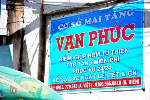 Cũng tại hẻm này, nhiều người ngạc nhiên xen lẫn tò mò với một tấm biển có nội dung: "Vạn Phúc - Điểm giúp hòm từ thiện, trợ táng miễn phí phục vụ 24/24, kể cả ngày lễ, tết và Chủ nhật". Thấy chúng tôi khá tò mò, một người dân ở đây đã nhiệt tình dẫn chúng tôi đến gặp “chủ nhân” của tấm biển ấy. Đó là anh Nguyễn Văn Úc (SN 1963) và hiện đang làm nghề xe ôm.