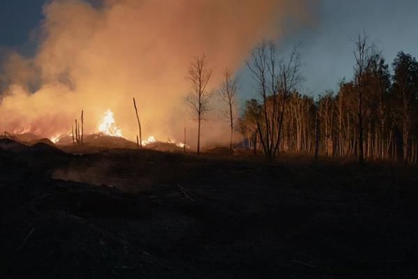 Đống gỗ phế liệu bốc cháy tại ngoại ô Kansk (Ảnh: New York Times)