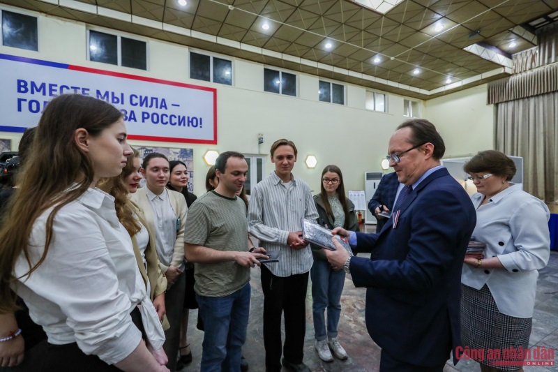 Đại sứ Bezdetko Gennady Stepanovich trao đổi cùng các cử tri trẻ tới bỏ phiếu. Trả lời phỏng vấn, Đại sứ Gennady Bezdetko cho biết cuộc bầu cử Tổng thống Liên bang Nga lần thứ 8 là sự kiện rất quan trọng, không chỉ ở Nga mà đối với cả thế giới. Hôm nay 17/3 tất cả điểm bầu cử trên lãnh thổ Nga sẽ diễn ra ngày bầu cử cuối cùng từ 8h sáng đến 20h.
