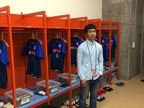 Công Phượng vào phòng thay đồ của Mito Hollyhock trước giờ diễn ra trận đấu ở vòng 39 J-League 2