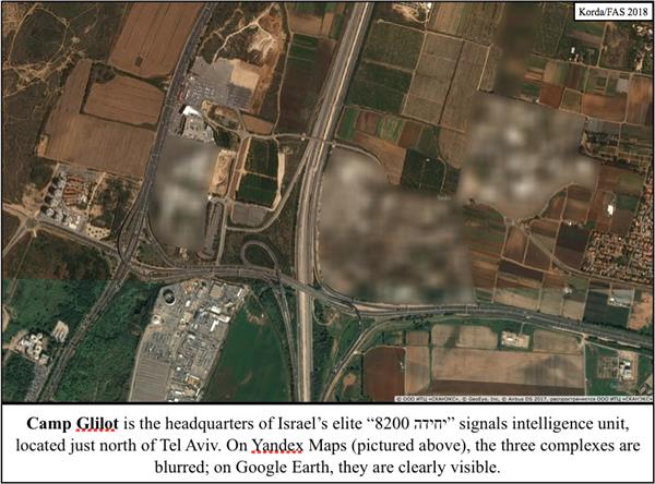 Trại Glilot bị Yandex làm mờ. Ảnh: FAS