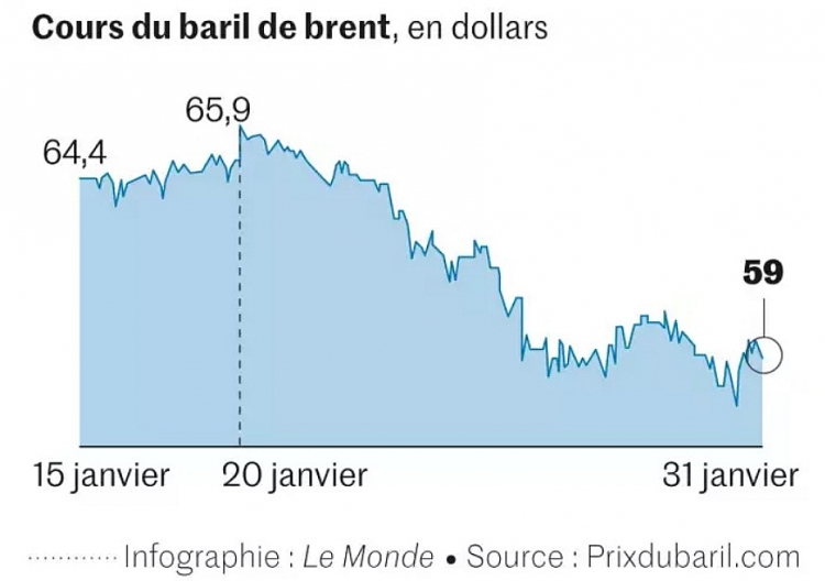 Từ khi bắt đầu dịch bệnh bùng phát, giá dầu thô đã giảm từ 62 đô la một thùng xuống còn 57, trước khi tăng lên 59 đô la vào sáng 31/1. Lý do khá đơn giản. Chỉ riêng nhu cầu của Trung Quốc đã thúc đẩy thị trường dầu thô trong nhiều năm. Nếu nhu cầu này chùn bước, toàn bộ thị trường dầu thế giới sẽ rung chuyển.