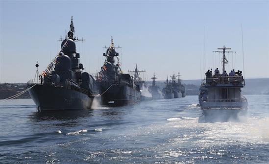 Tàu chiến Nga diễu hành nhân Ngày Hải quân ở Sevastopol, Crimea vào 24/7/2015.