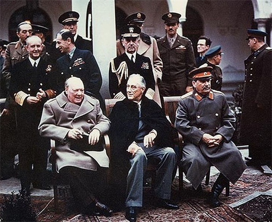 Bộ ba thủ tướng Anh Winston Churchill, tổng thống Mỹ Franklin Roosevelt và tổng bí thư Liên Xô Joseph Stalin tại hội đàm Yalta ở Crimea phân định lại thế giới sau Thế chiến thứ hai - Ảnh: wikipedia.org