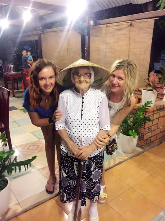 Cụ Lena chụp ảnh với những người Nga chỉ vừa mới quen biết sau khi đến Việt Nam.