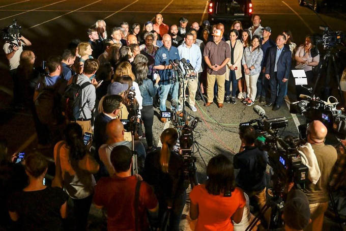 Nhóm nghị sĩ Texas phát biểu với báo giới sau khi hạ cánh xuống Washington. Ảnh: Washington Post.