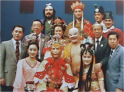 Nghệ sĩ Thiết Ngưu và các diễn viên vai thần tiên trong phim Tây Du Ký tại sự kiện Tề Thiên Lạc 1986.
