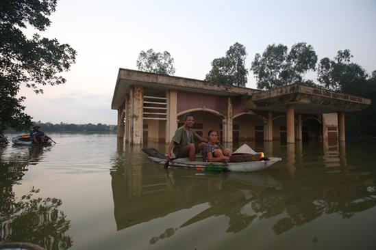 Nước ngập, nhiều người dân phải bỏ nhà để tìm nơi nương náu. Cuộc sống tạm bợ, họ khắc khoải chờ nước rút.