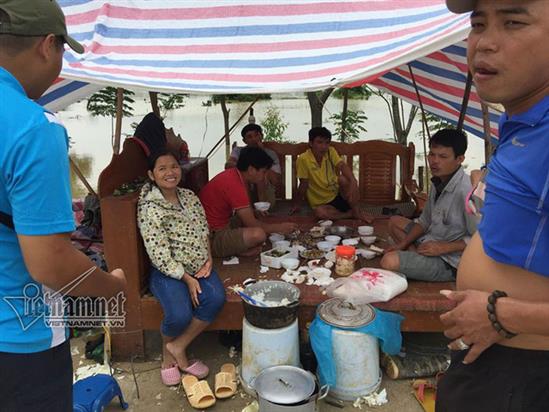 Bữa cơm trưa tạm bợ của một gia đình trên đê.