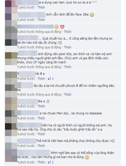 Dòng tâm trạng vừa được đưa lên trang cá nhân chưa được 10 phút mà có đến hàng trăm lượt like và hàng chục comment chia sẻ thể hiện sự cảm thông cũng như động viên tinh thần cho vị đại gia này.