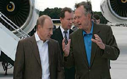 Cựu Tổng thống Mỹ George H. W. Bush (Bush "cha" - bên phải) ra tận sân bay để đón Tổng thống Putin.