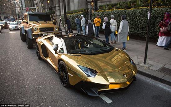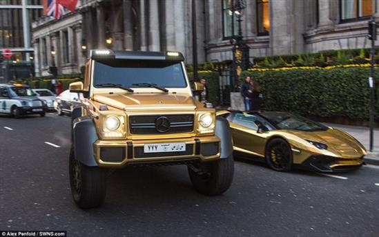 Dàn siêu xe và xe siêu sang mạ vàng trị giá hơn 1 triệu bảng Anh được một vị đại gia Ả Rập mang sang London trong chuyến du lịch.