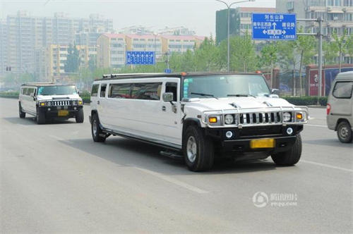Những chiếc Hummer thân dài nối đuôi nhau trên đường phố.