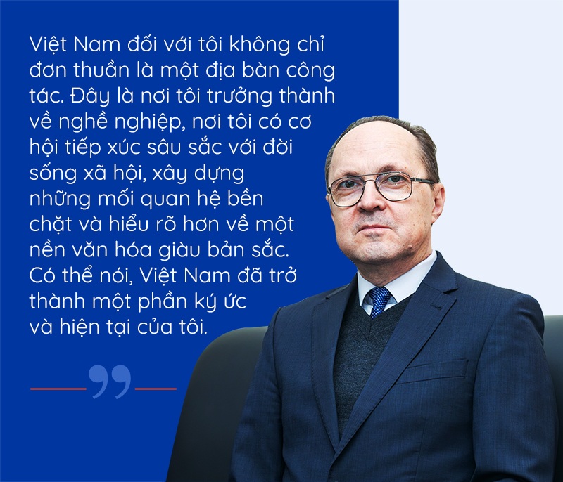 Sau đó, tôi trở lại Việt Nam với tư cách nhà ngoại giao của Tổng Lãnh sự quán Liên Xô, rồi Liên bang Nga. Tổng cộng, tôi đã làm việc tại cả miền Bắc và miền Nam hơn 20 năm. Ngay cả khi đảm nhiệm những vị trí khác nhau tại Bộ Ngoại giao Nga ở Moskva, tôi vẫn theo sát các vấn đề liên quan đến Việt Nam, coi đây là một trong những trọng tâm quan trọng trong công việc của mình.