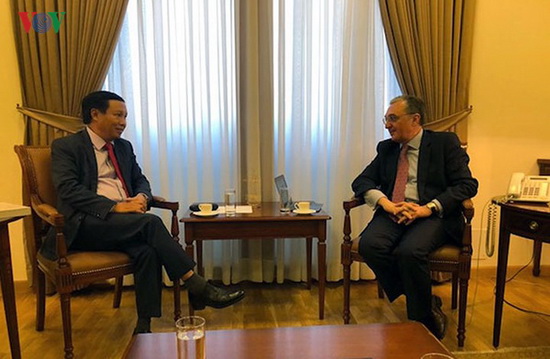 Trước đó, chiều 30/8, Đại sứ Ngô Đức Mạnh đã gặp làm việc với Bộ trưởng Bộ Ngoại giao Armenia Zohrab Mnatsakanyan, lãnh đạo Vụ châu Á, Châu Phi và Châu Đại dương, Vụ Kinh tế song phương và đa phương để thảo luận về tình hình và các biện pháp tăng cường quan hệ, phối hợp triển khai các hoạt động đối ngoại giữa hai nước. Đại sứ Ngô Đức Mạnh cũng đã thăm một số cơ sở kinh tế và sản xuất của Armenia như Khu kinh tế đặc biệt Alliance, nhà máy may của Tập đoàn Alex... để tìm hiểu, trao đổi về tiềm năng, thế mạnh và cơ hội hợp tác giữa hai bên./.