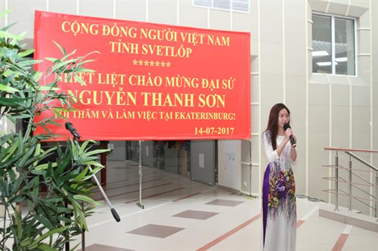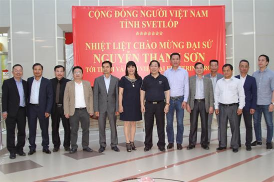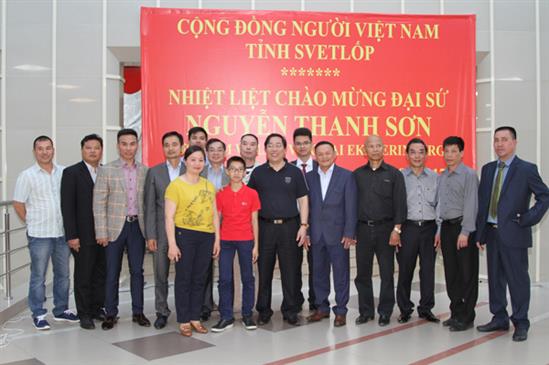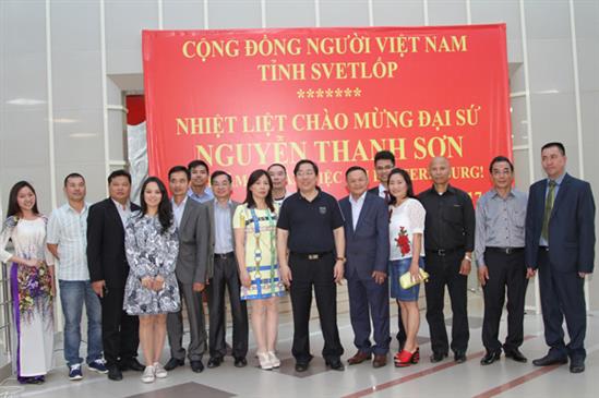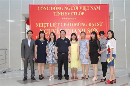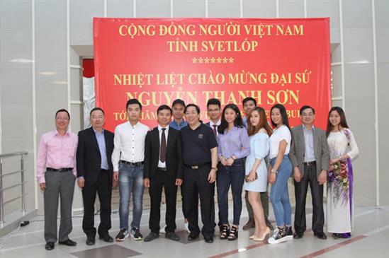 Sau đó, Đại sứ Nguyễn Thanh Sơn và đoàn đã gặp gỡ bà con cộng  đồng người Việt tại tỉnh Svetlốp. Mở đầu chương trình, ca sỹ cộng đồng Minh Châu và Phương Thảo đã trình bày các nhạc phẩm  chào mừng chuyến thăm của Đại sứ và đoàn công tác.