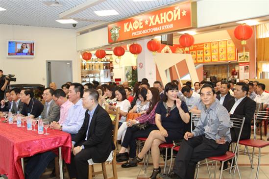 Mặc dù rất bận rộn, Đại sứ Nguyễn Thanh Sơn cùng Đoàn công tác vẫn dành thời gian đến thăm nơi làm việc của cộng đồng  Việt Nam tại Tổ hợp thương mại Taganski Riad, cùng với ông Lê Thành Độ- Tổng giám đốc Công ty Pacific- Ủy viên BCH Hiệp hội Doanh nghiệp Việt Nam tại LB Nga.