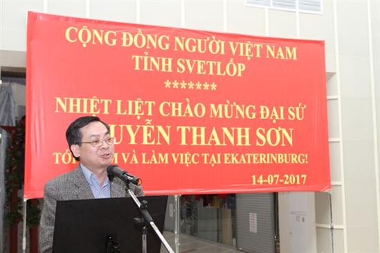 Phát biểu trước bà con Việt Nam, Đại sứ Nguyễn Thanh Sơn đánh giá cao tinh thần đoàn kết và những nỗ lực vượt khó của cộng đồng người Việt. Đại sứ cũng vui mừng cho biết, các cấp lãnh đạo Svetlốp đánh giá tốt cộng đồng người Việt tại đây và họ hứa sẽ hỗ trợ cộng đồng người Việt phát triển vững mạnh trên cơ sở tuân thủ luật pháp Việt Nam và LB Nga.