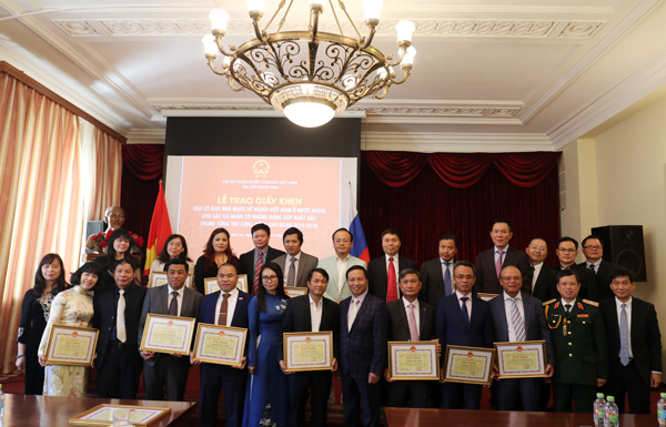 Đại sứ quán tổ chức lễ trao giấy khen của Ủy ban nhà nước về người Việt Nam ở nước ngoài cho các cá nhân đại diện cho cộng đồng người Việt Nam tại Liên bang Nga.