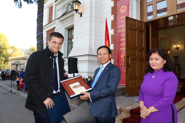 Tới dự buổi lễ có ông Melnhikov Ivan Ivanovich, Phó Chủ tịch thứ nhất Duma Quốc gia Nga, Thứ trưởng Bộ Ngoại giao Nga Igor Morgulov, các quan khách đến từ Quốc hội, Bộ Ngoại giao và một số bộ, ngành của Liên bang Nga, thủ đô Moscow, đại diện Hội Hữu nghị Nga – Việt và Hội cựu chiến binh Nga, các vị Đại sứ và đại diện trong Đoàn Ngoại giao các nước; các bạn Nga cùng toàn thể cán bộ, nhân viên Sứ quán, các cơ quan đại diện Việt Nam tại Nga và đại diện cộng đồng người Việt Nam tại Liên bang Nga.