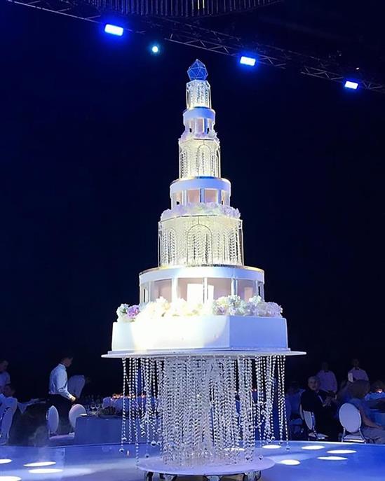 Riêng chiếc nhẫn kim cương chú rể trao cho cô dâu đã có giá lên tới 7 triệu bảng Anh (khoảng 204 tỷ đồng). Lễ cưới được trang hoàng cầu kỳ với bánh cưới 8 tầng cùng dàn hoa tươi, những chùm đèn pha lê lấp lánh.
