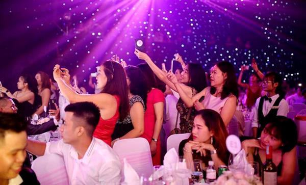 Khách dự tiệc cưới không khỏi choáng ngợp trước sự hoành tráng của hệ thống sân khấu được dàn dựng công phu và hoành tráng, hệ thống âm thanh tương đương với show diễn nghệ thuật lớn, đặc biệt là sự xuất hiện của nhiều nhân vật nổi tiếng.