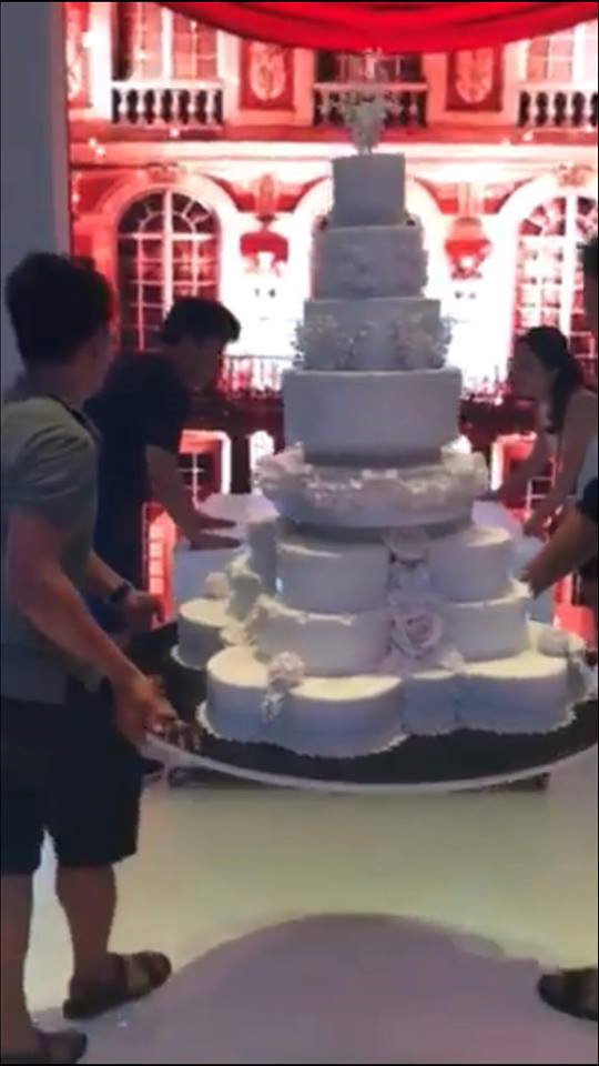 Đám cưới siêu khủng được đánh giá quy mô tổ chức còn lớn hơn cả 1 đại nhạc hội. Thực đơn các món ăn đều theo tiêu chuẩn 5 sao của một resort nổi tiếng đảm nhận. Bánh cưới 10 tầng phải do 3 người khiêng. Không gian tiệc cưới được phủ bằng cả rừng hoa tươi ngợp trời khiến ai cũng không khỏi xuýt xoa.