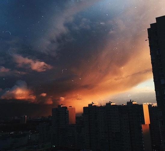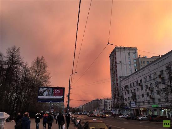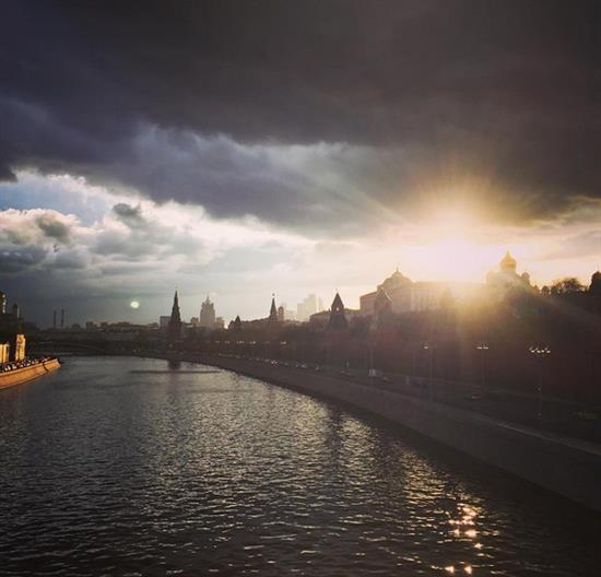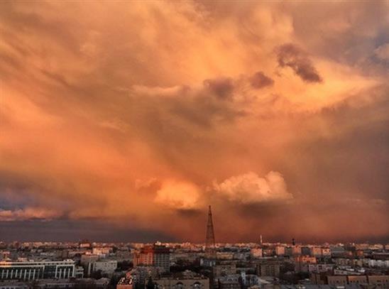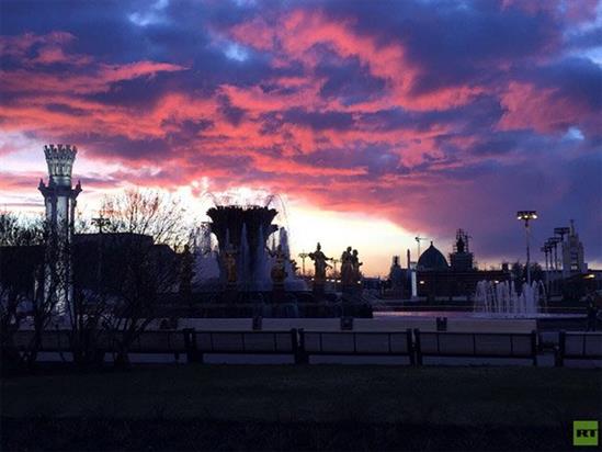 Vào thời điểm này năm nay, thủ đô Nga không có bầu trời xanh vì mưa, nhiều mây, thậm chí có tuyết. Nhưng một ngày nắng ấm đã dẫn tới một buổi tối với cảnh tượng thiên nhiên lạ mắt.