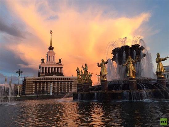Người dân ở Moscow, tối 24/4, được chứng kiến hình đám mây ánh vàng đỏ đầy kỳ bí bao phủ bầu trời thành phố.